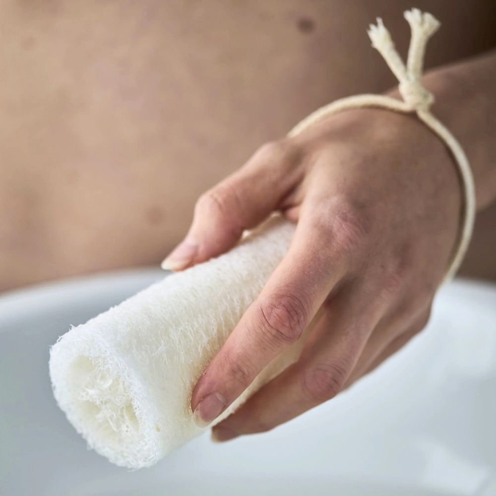 Loofah-svamp för kroppsskrubb från Organic Beauty Supply.