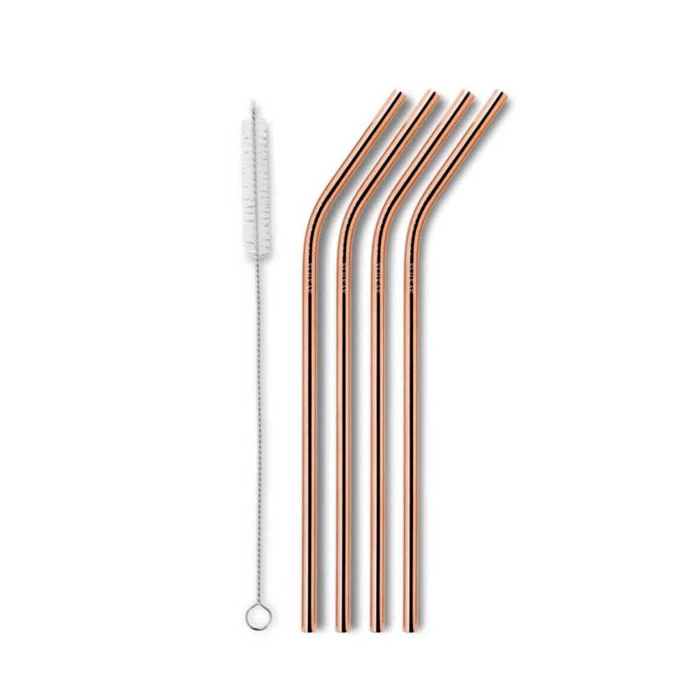 AYAIDA Sugrör i rostfritt stål - med böj - inkl. borste - Rose Gold