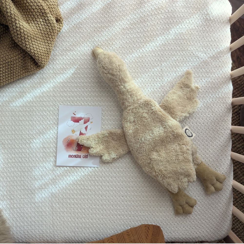 Inne i gåsens mage ligger en påse fylld med speltkorn, som kan tas ut och värmas efter behov. Detta gör gåsen till en idealisk följeslagare för barn som behöver lindring vid feber, magont eller bara önskar lite extra värme i barnvagnen på kalla dagar. Speltkornen skapar en lugnande effekt och ger ett behagligt, knastrande ljud när man kramar gåsen.
