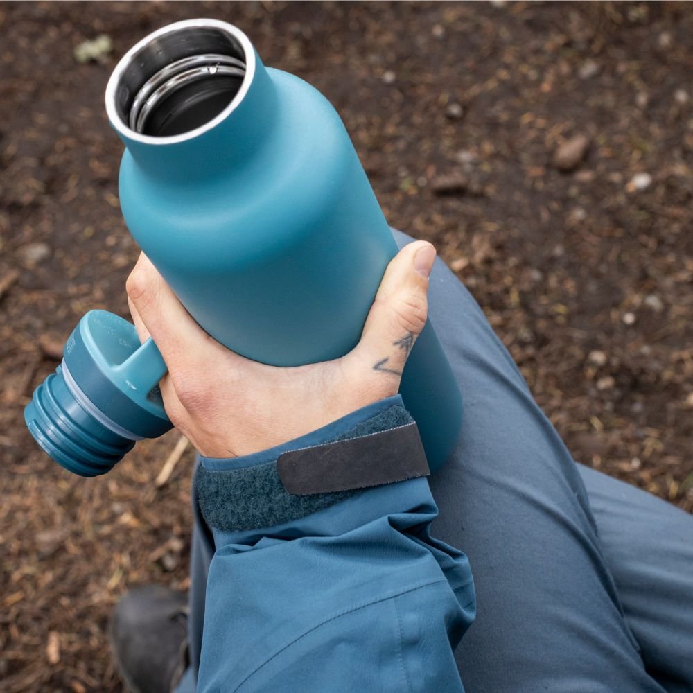 Med en termo vattenflaska i rostfritt stål från 24Bottles undviker du plast helt och hållet. Locket på flaskan är nämligen också i rostfritt stål - endast en liten ring i livsmedelsgodkänd silikon är tillagd för att hålla flaskan tät.